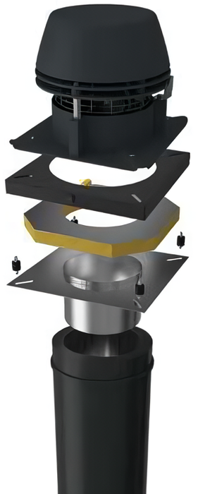 Exodraft (Эксодрафт) RSV009-4-1- это дымоходный (каминный) вентилятор с вертикальным выбросом воздуха. Термостойкий полностью закрытый асинхронный мотор вентилятора дополнен надежно запломбированными подшипниками. Для охлаждения двигателя предусматриваются специальный клапан и охлаждающая пластина.