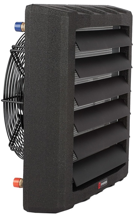 Водяные тепловентиляторы Reventon относятся к серии Standart применяются на больших по площади объектах для общественного пользования. Интенсивное распространение тепла осуществляет экономичный вентилятор, а за нагрев воздуха при этом отвечает водяной теплообменник. Быстрый нагрев сочетается с мощным перемешиванием воздуха, выравнивая везде его температуру, что экономит ресурс. Материалы аппарата экологически чистые.