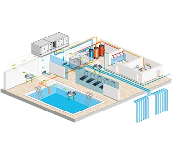- Укрытие зеркала бассейна для снижения испарения воды и конденсации (при его наличии).